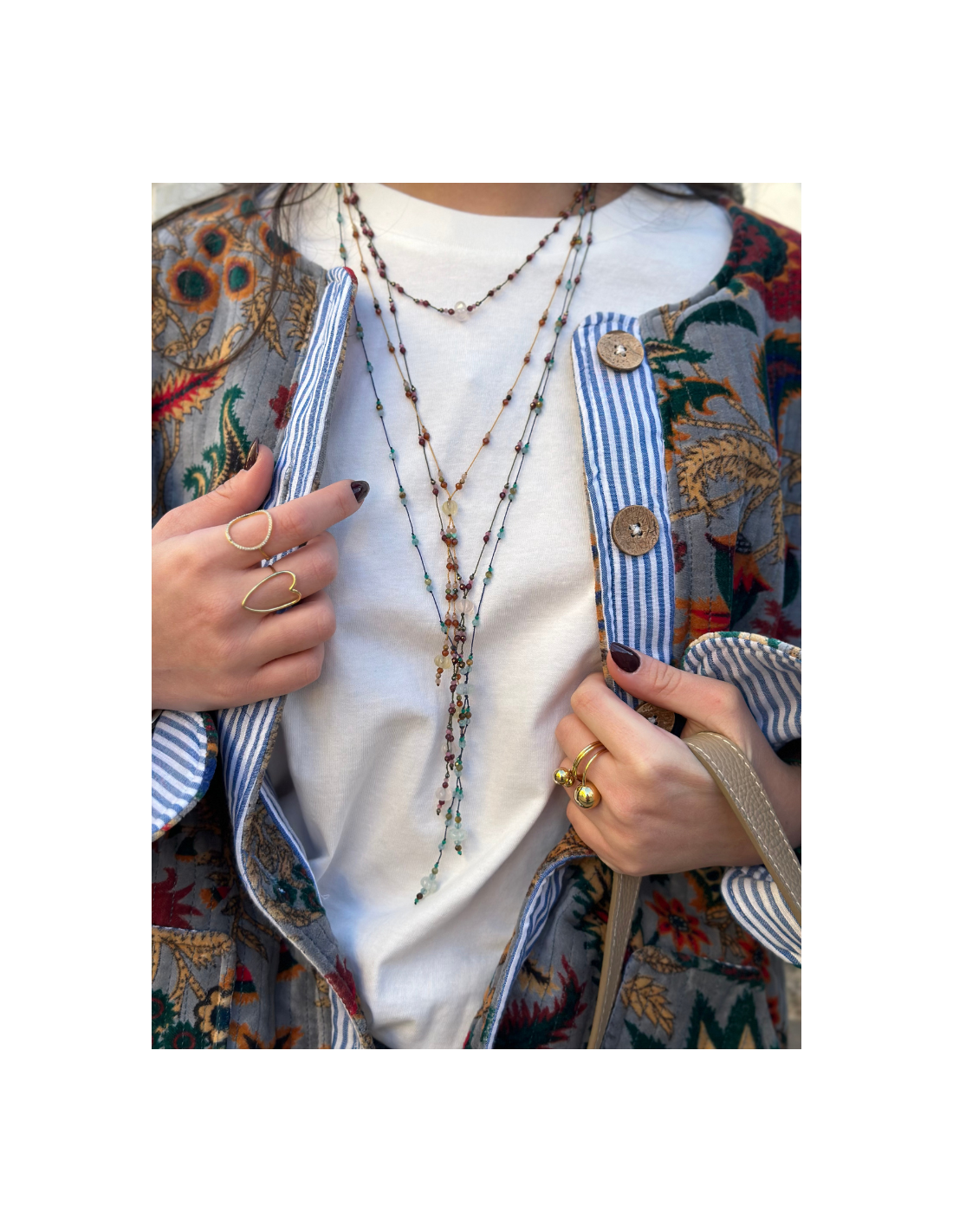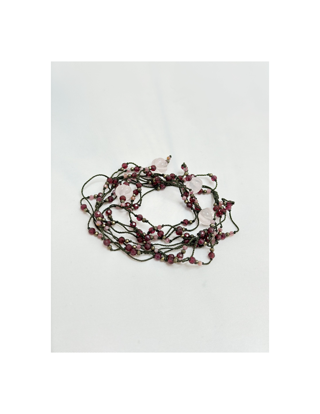 GRENAT, PYRITE, TOURMALINE ROSE, FIL SABLE