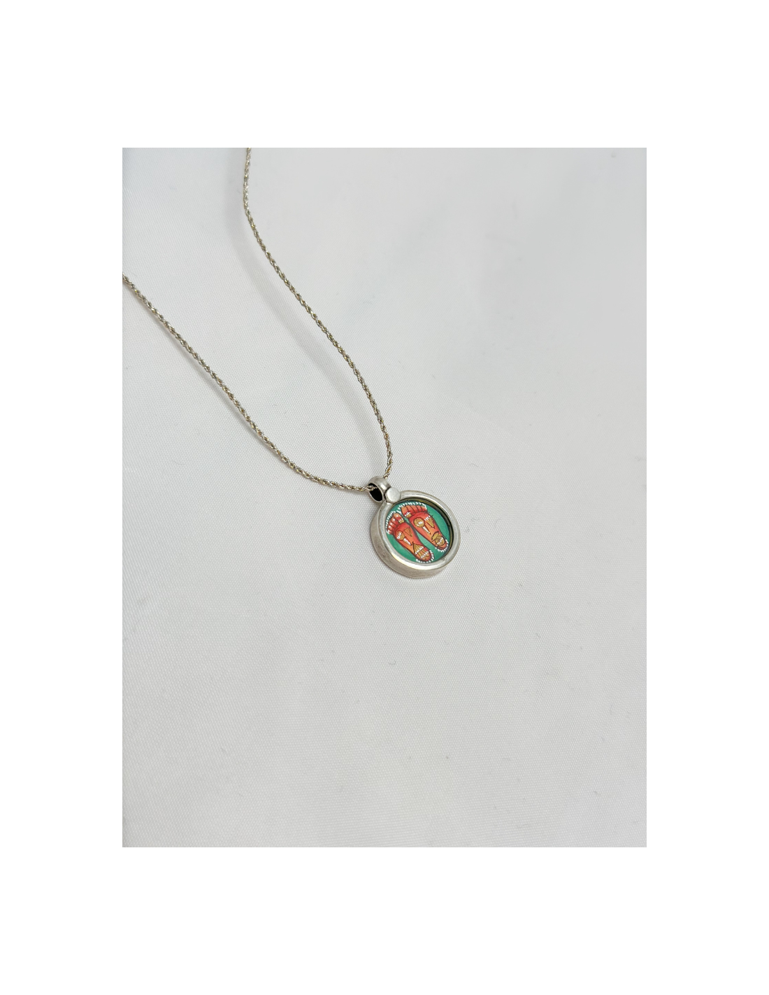 PEINTES À LA MAIN, MÉDAILLON ARGENT SCULPTÉ