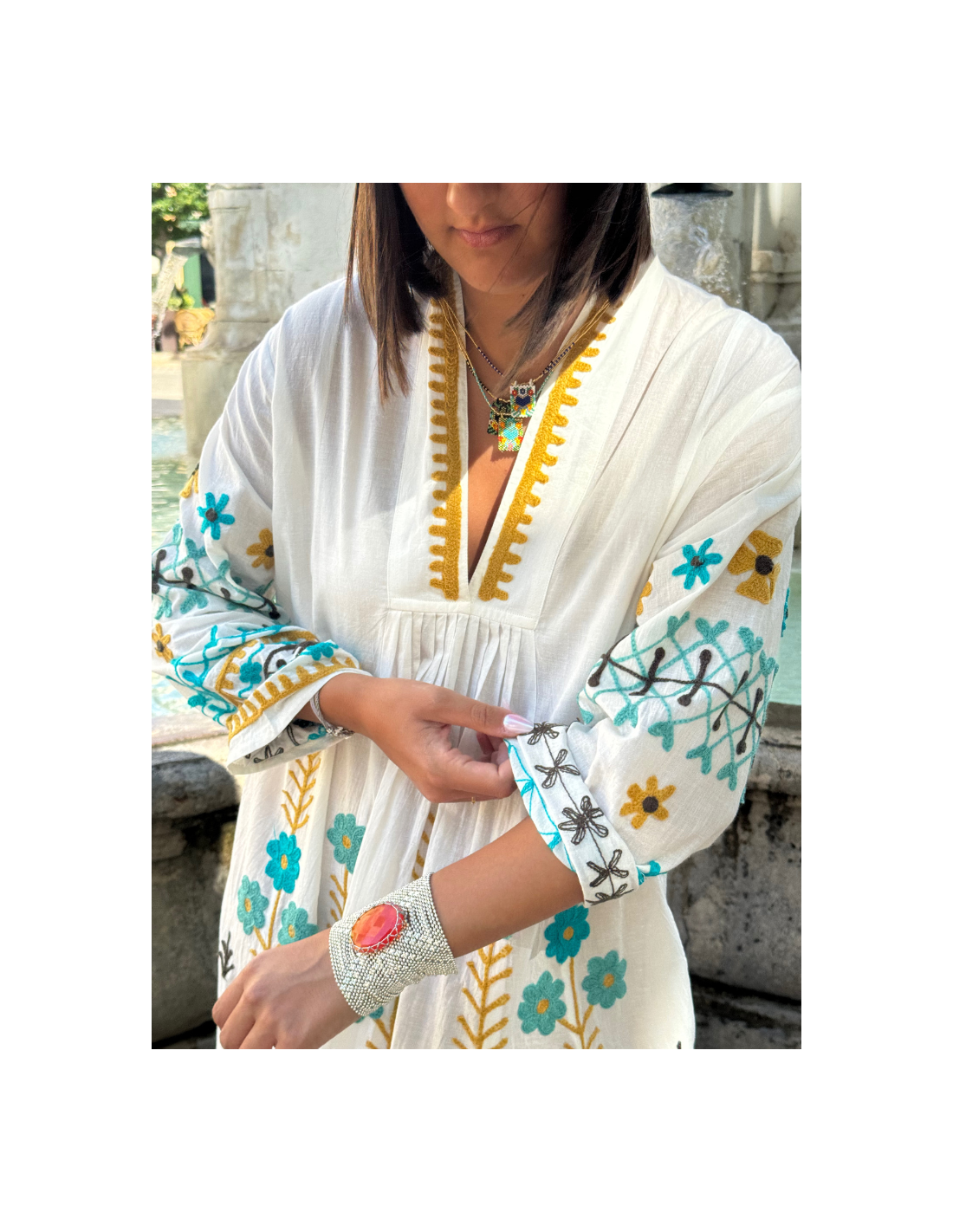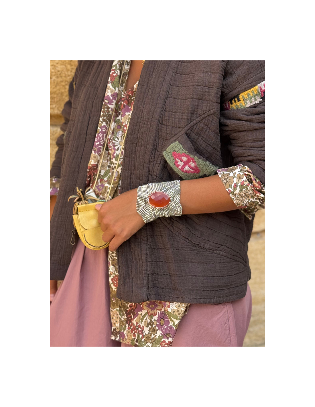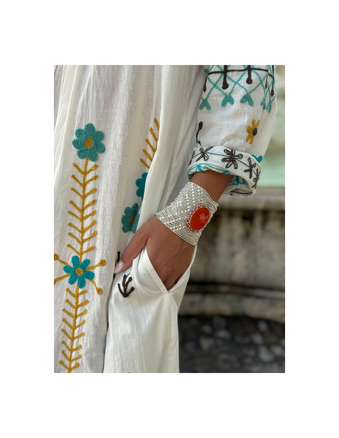 Taille de la pierre : 8 cm de largeur / longueur : 17-19 cm ajustable grâce à deux pressions.