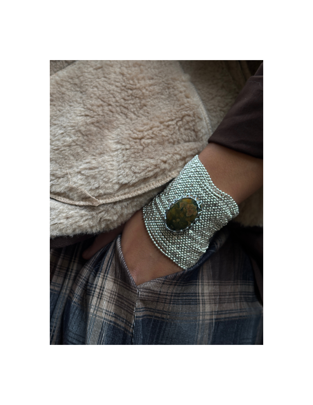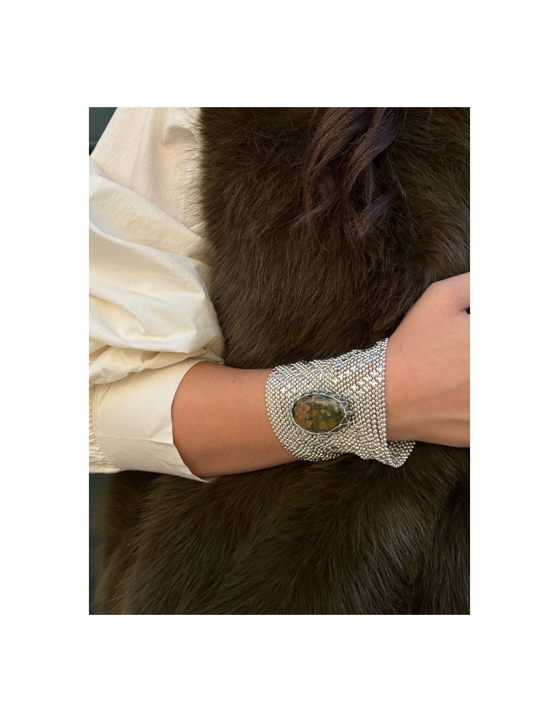 Taille de la pierre : 8 cm de largeur / longueur : 17-19 cm ajustable grâce à deux pressions.