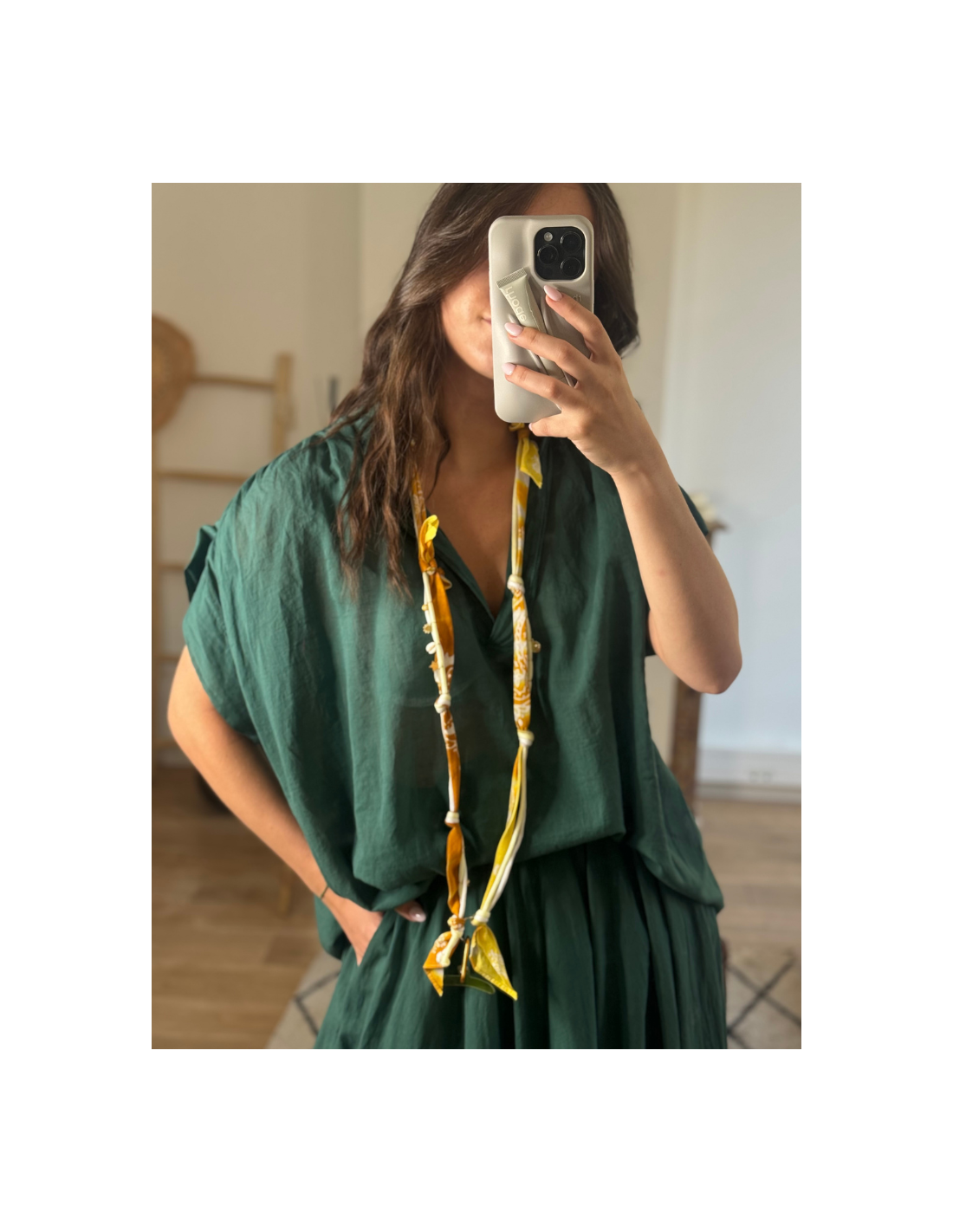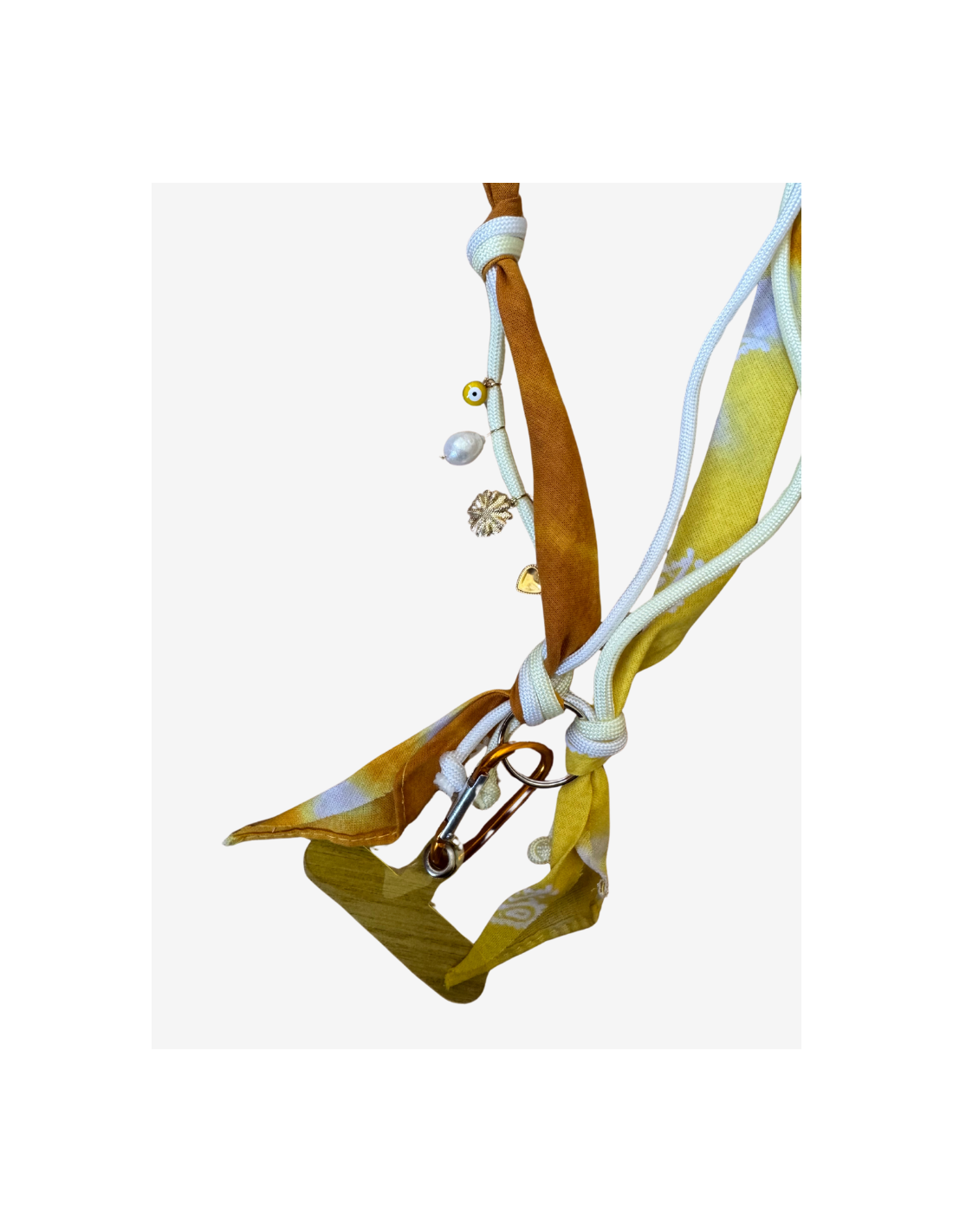 se porte autour du cou, en cross body mais également en multi tours au poignet.