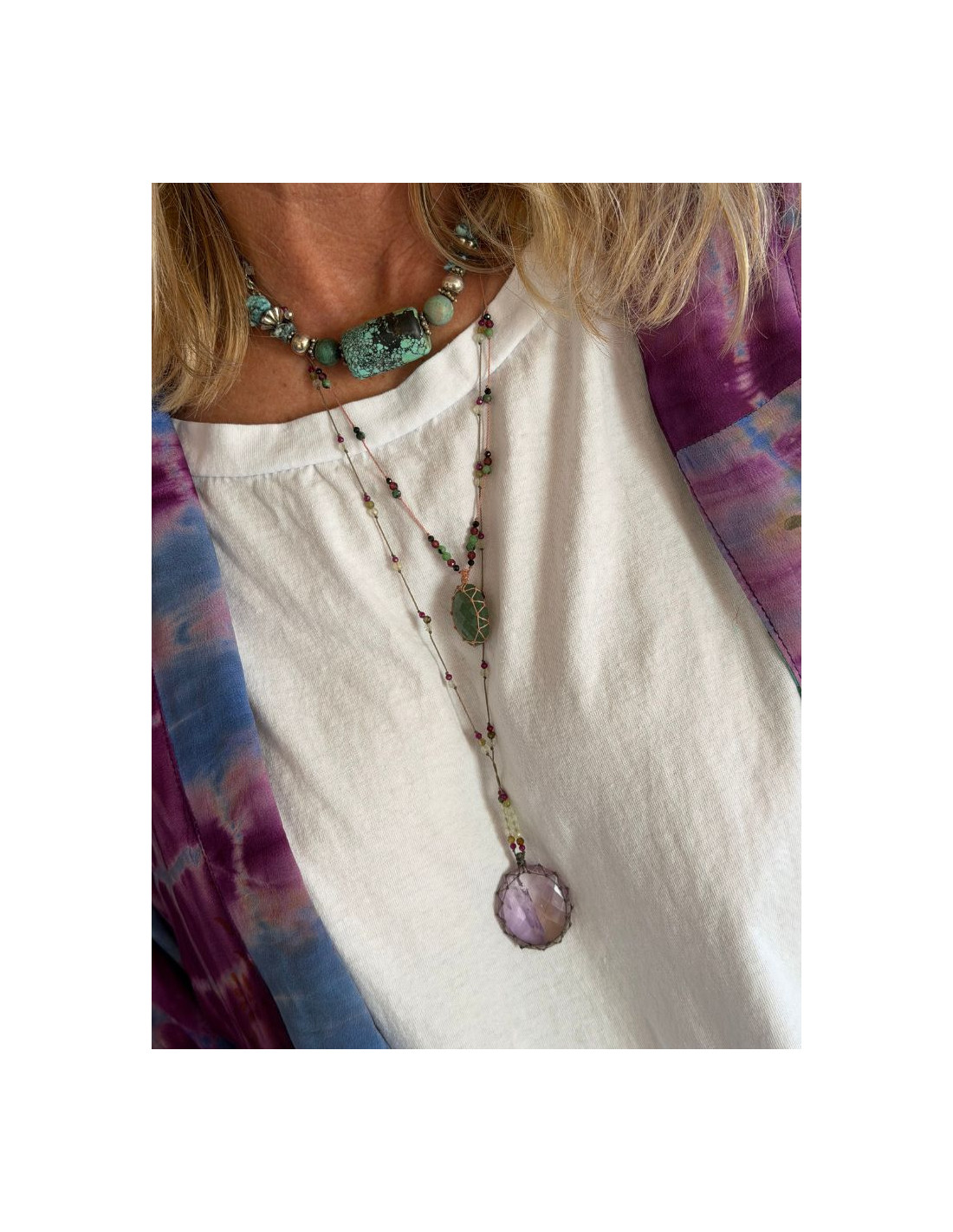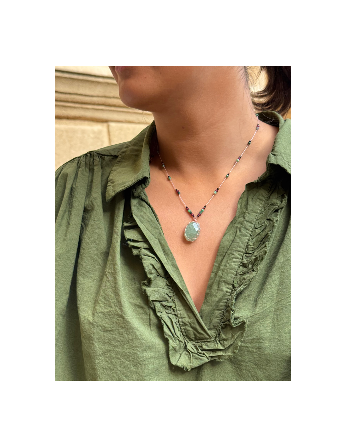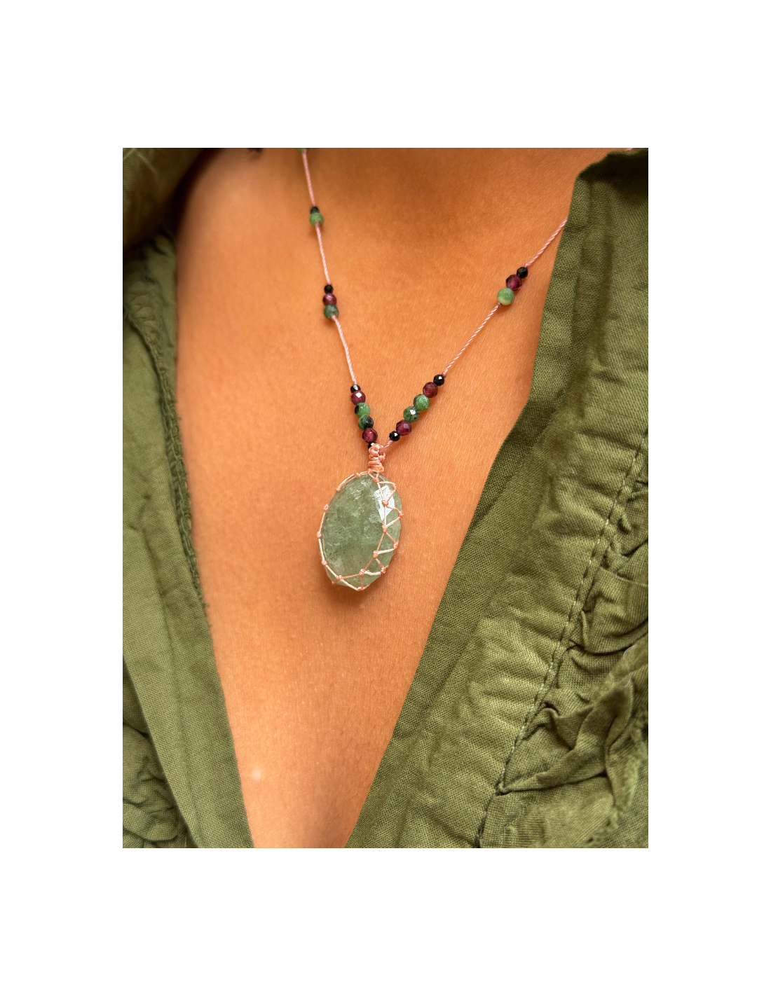 Les talismans quartz sont composés de plusieurs pierres : quartz framboise, onyx vert. Elles sont montées sur des fils de couleur rose. Le petit modèle est ajustable de 20 à 35 cm grâce à son fermoir coulissant. Tous nos colliers sont montés et noués à la main dans nos ateliers en Inde. Nos pièces sont uniques, des différences de taille ou de couleur peuvent apparaître parfois.
