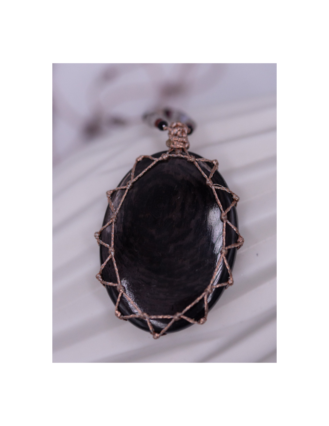 Le talisman est orné d’un cabochon d’hyperstène. Il est ajustable de 20 à 35 cm grâce à son fermoir coulissant.