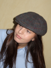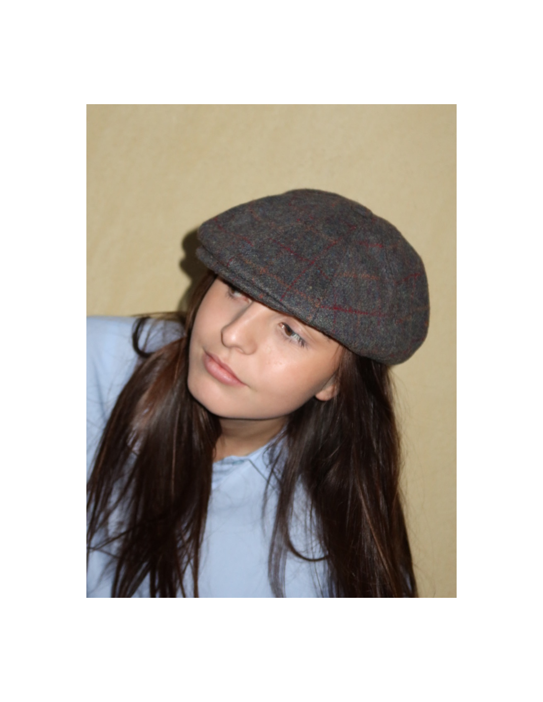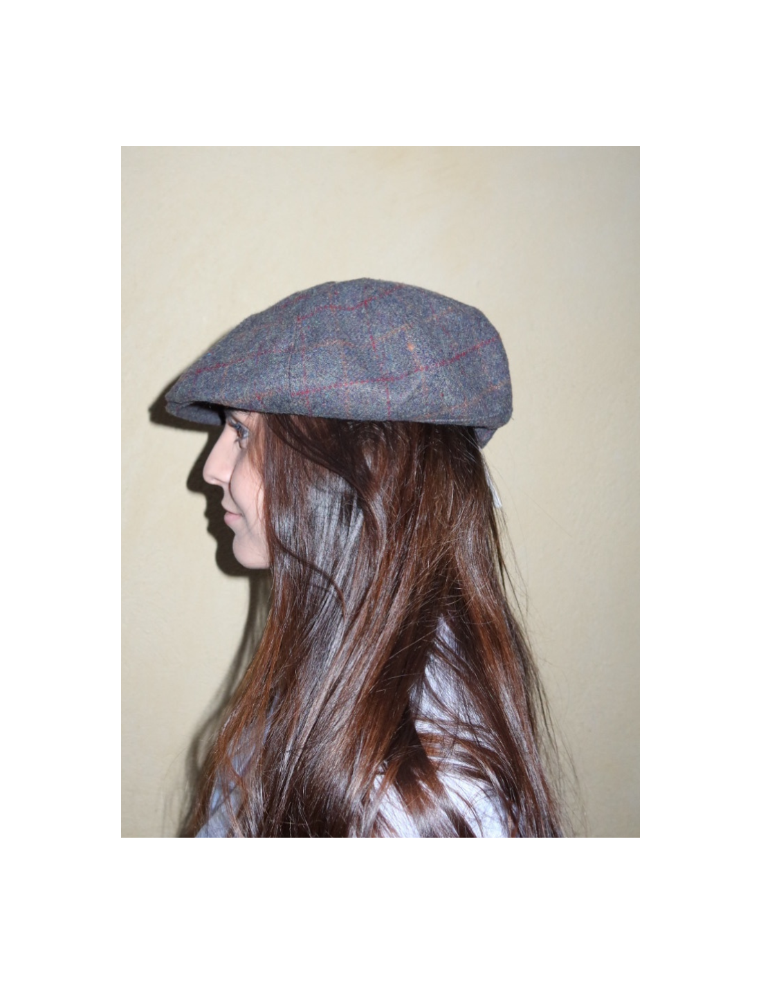 Gavroche effet laine à motif gris foncé avec de discrètes lignes rouges, oranges et vertes