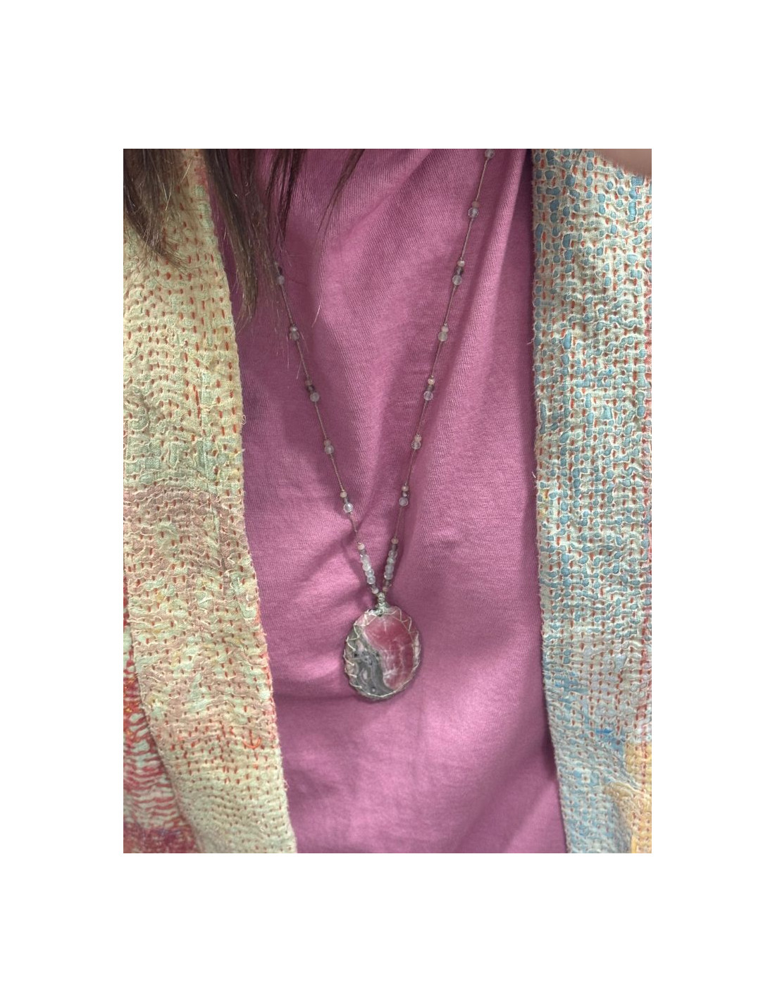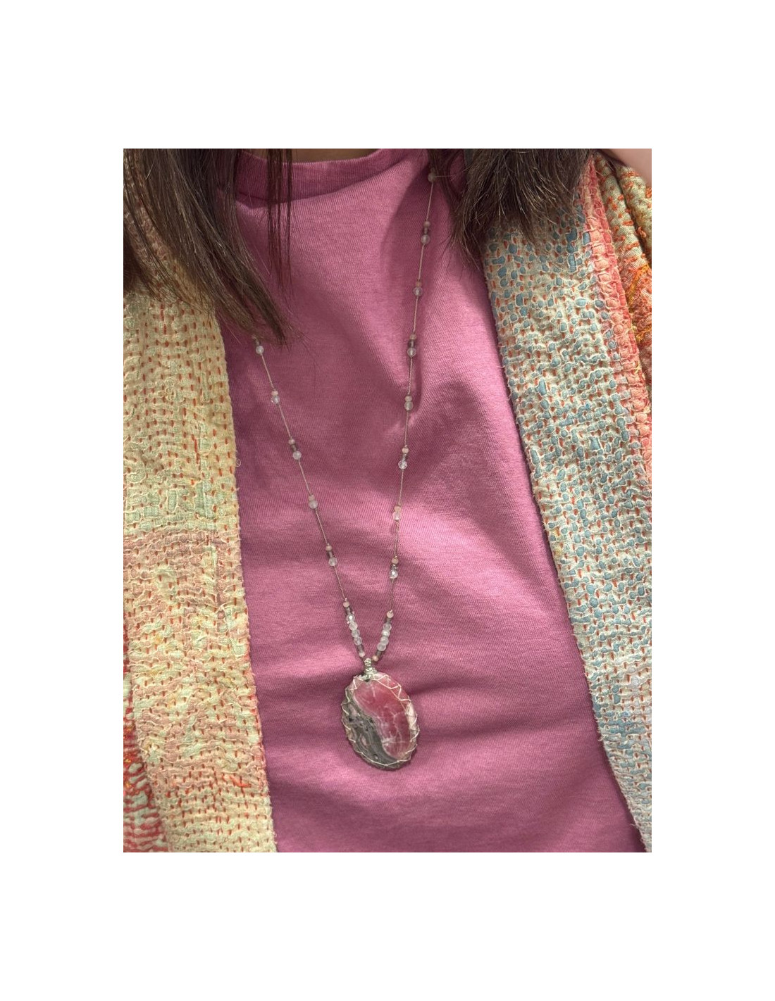 Tous nos colliers sont montés et noués à la main dans nos ateliers en Inde. Nos pièces sont uniques, des différences de taille ou de couleur peuvent apparaître parfois.