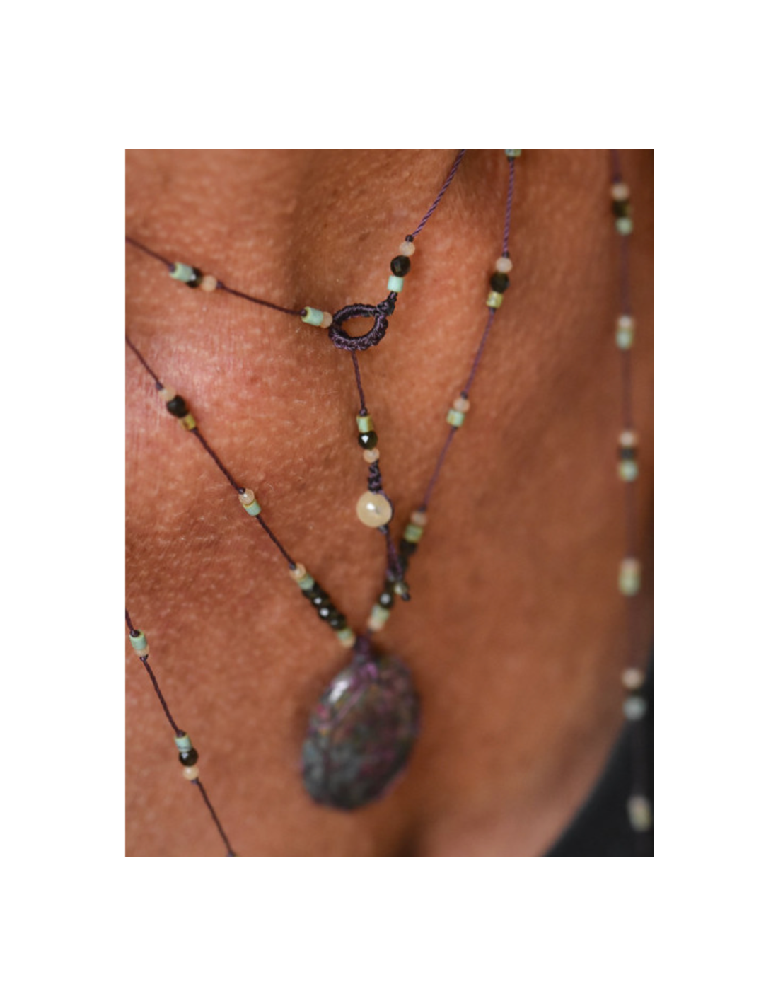 Tous nos colliers sont montés et noués à la main dans nos ateliers en Inde. Nos pièces sont uniques, des différences de taille ou de couleur peuvent apparaître parfois.