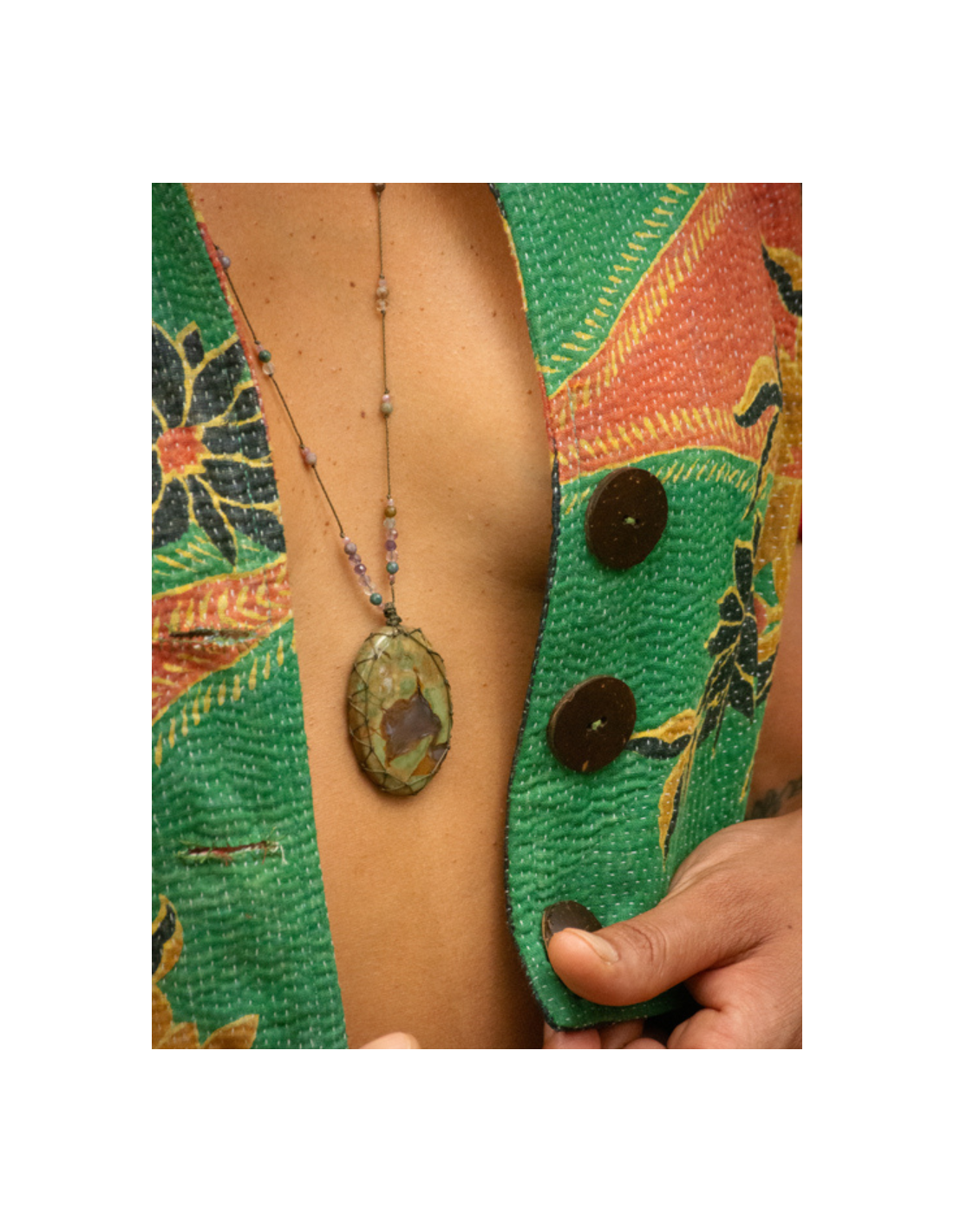Tous nos colliers sont montés et noués à la main dans nos ateliers en Inde. Nos pièces sont uniques, des différences de taille ou de couleur peuvent apparaître parfois.