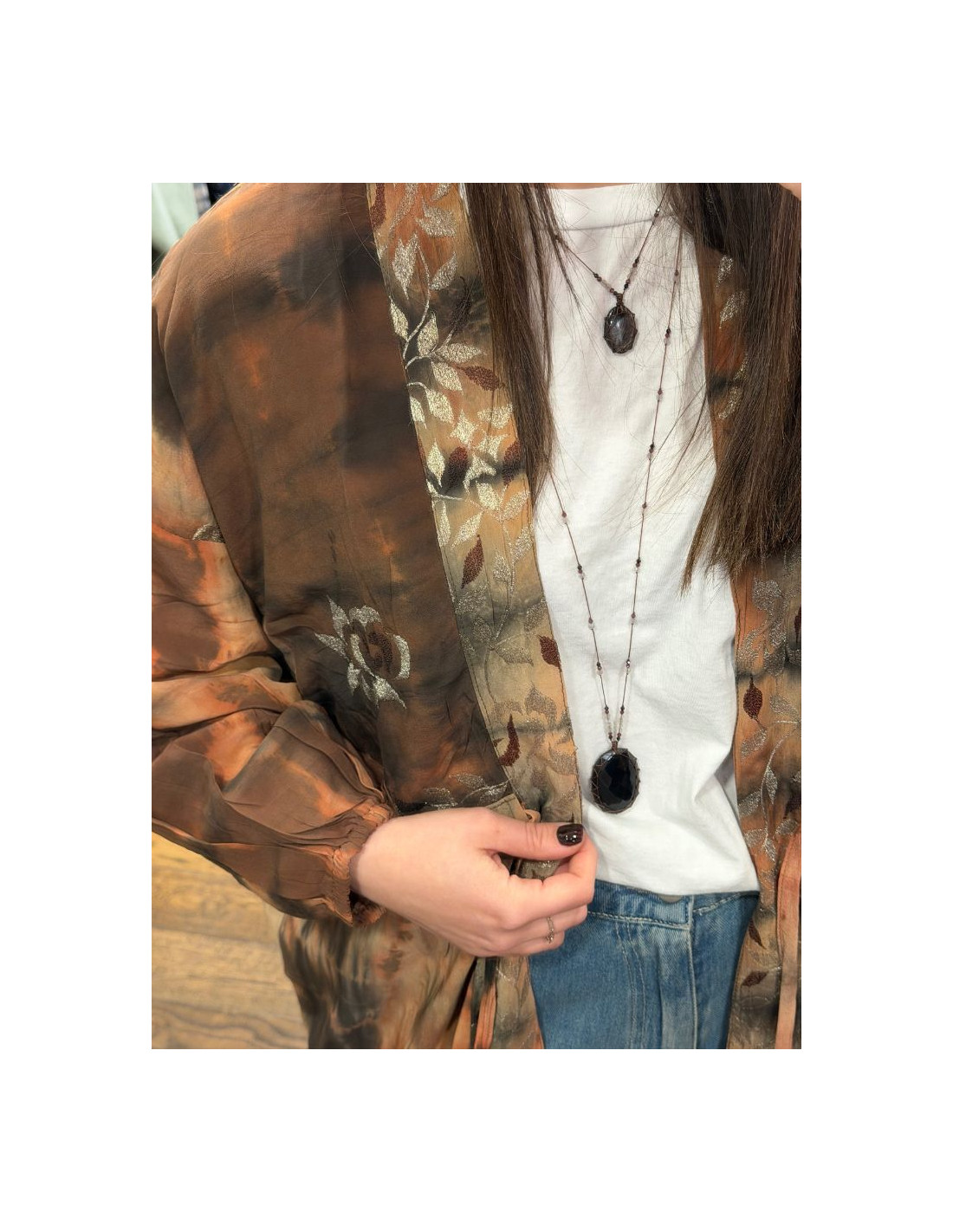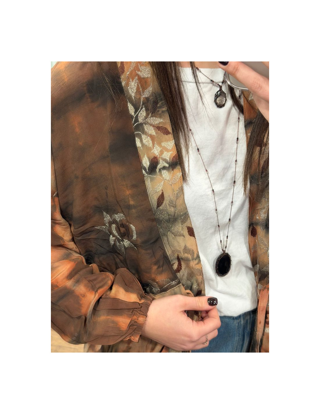 Ce modèle est confectionné à partir de soie de sari indien vintage et présente un style unique.