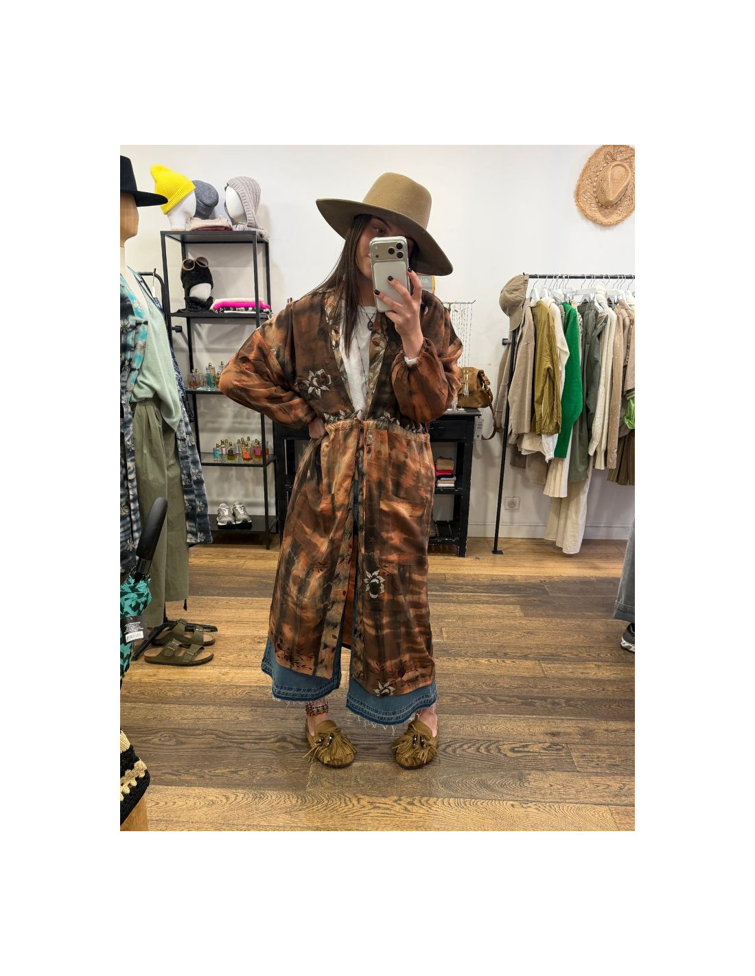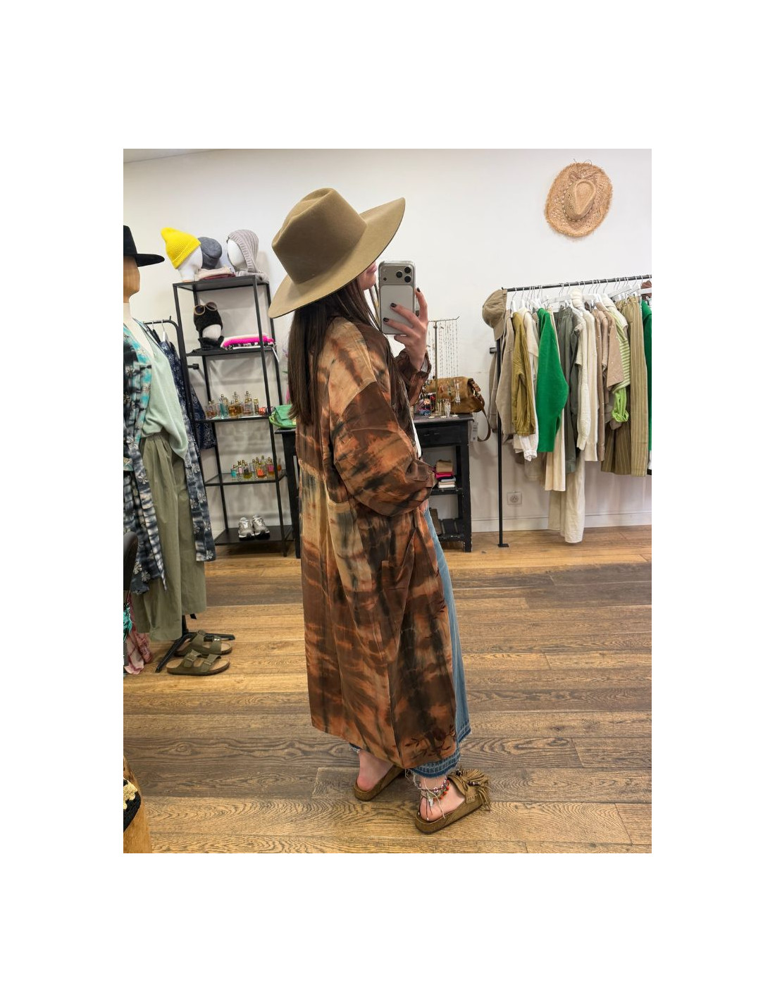 Le kimono Bardot est un kimono tendance et ample, doté d'une petite ceinture. Il possède également des poches avant et des manches élastiques.