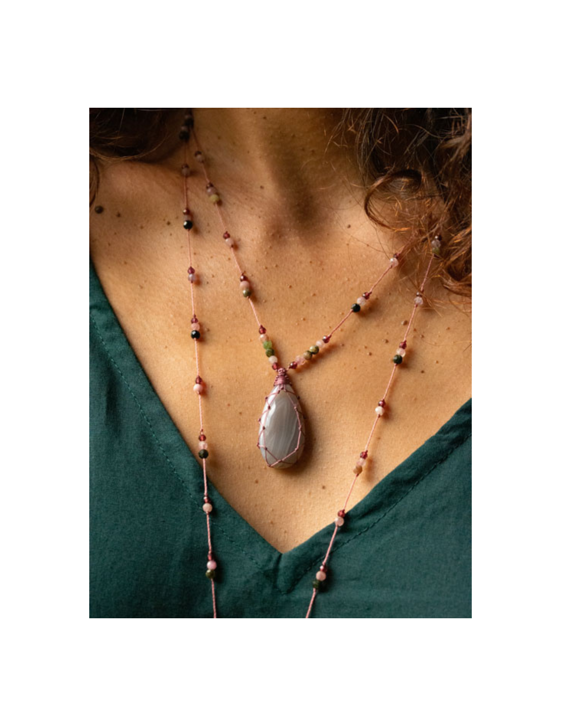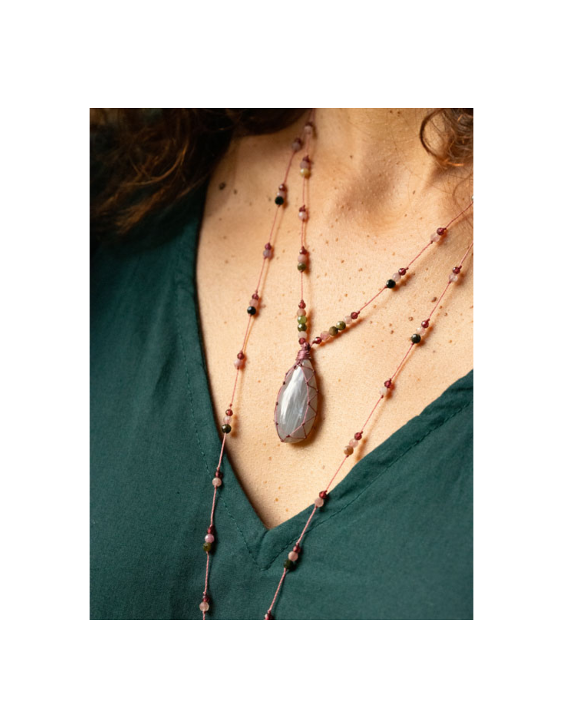 Tous nos colliers sont montés et noués à la main dans nos ateliers en Inde. Nos pièces sont uniques, des différences de taille ou de couleur peuvent apparaître parfois.