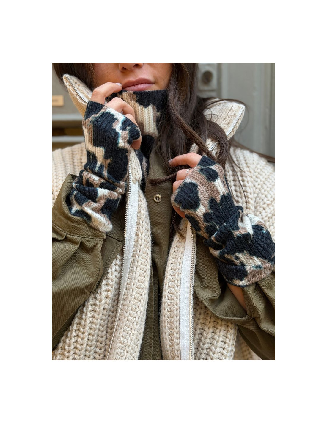 Mitaines KOON 100% cachemire 6 fils couleur léopard. Boutique Mademoiselle Louise - Melle Louise.