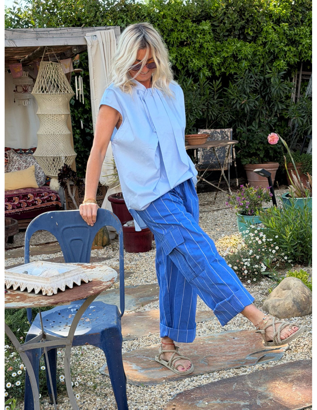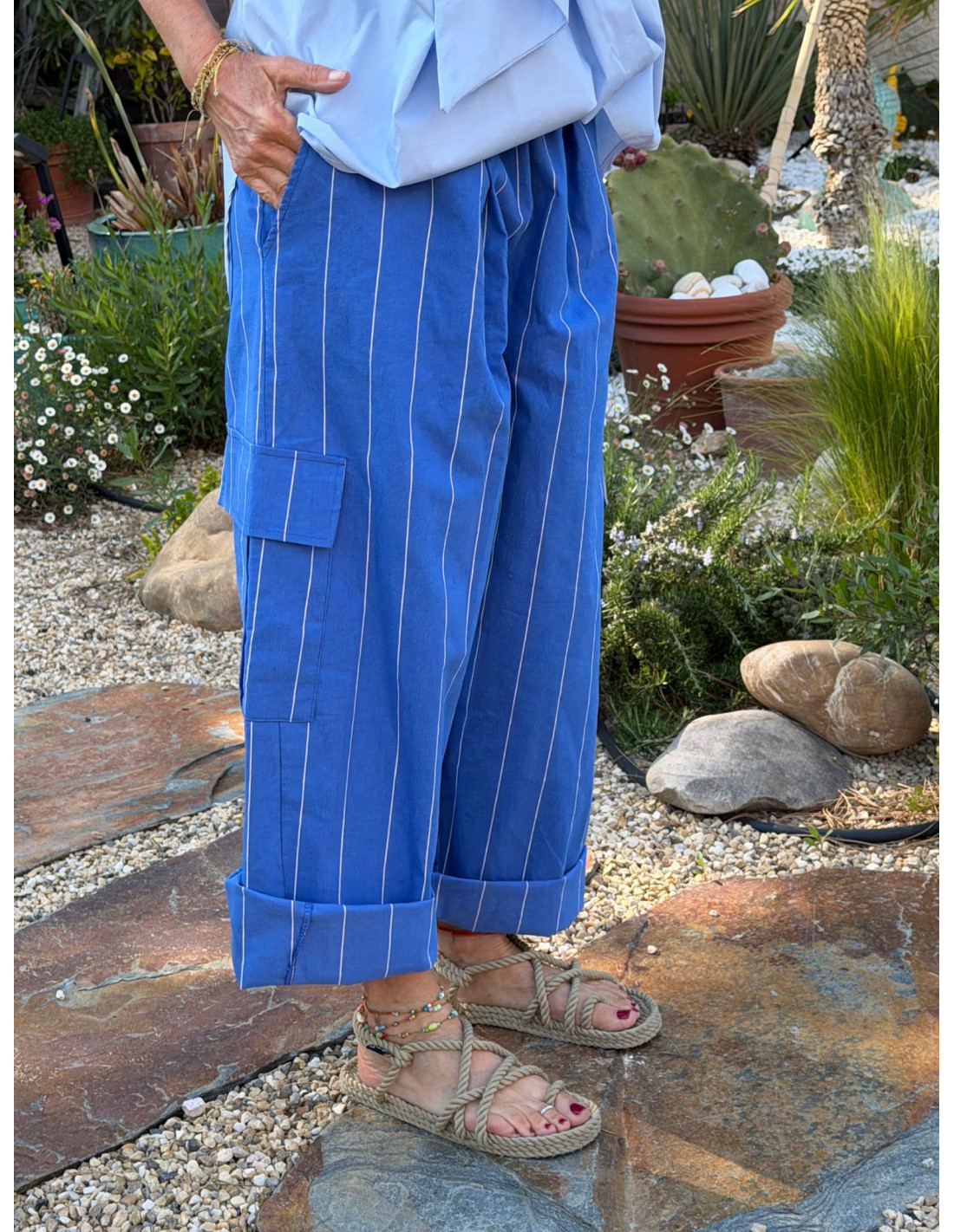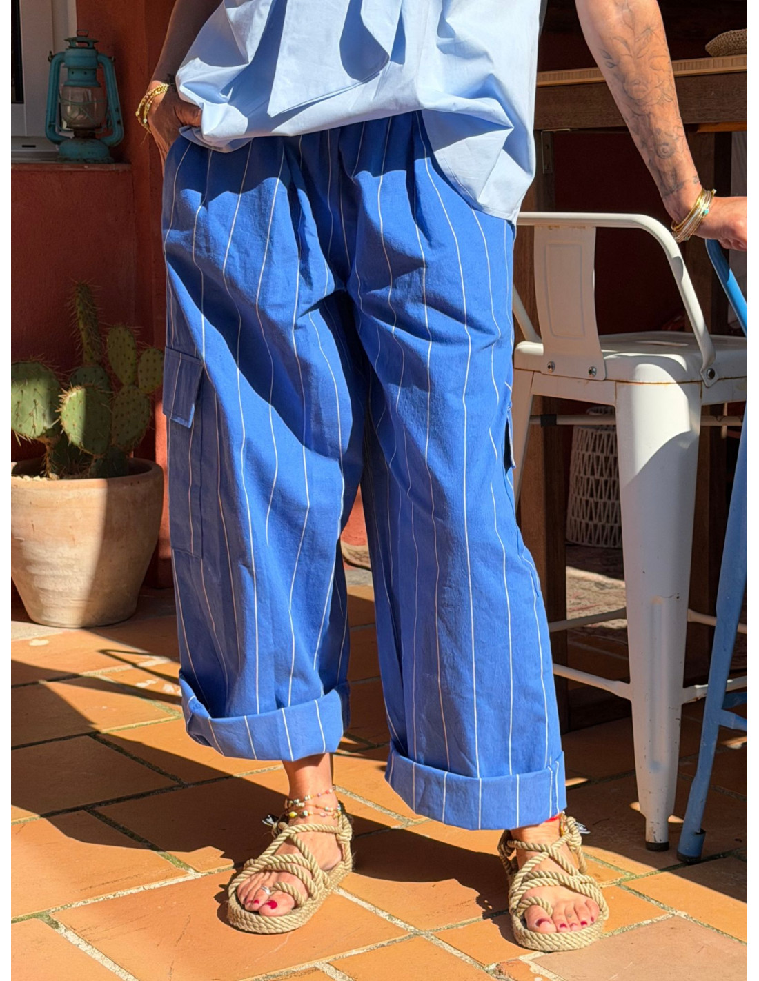 Pantalon SOLINE rayé bleu