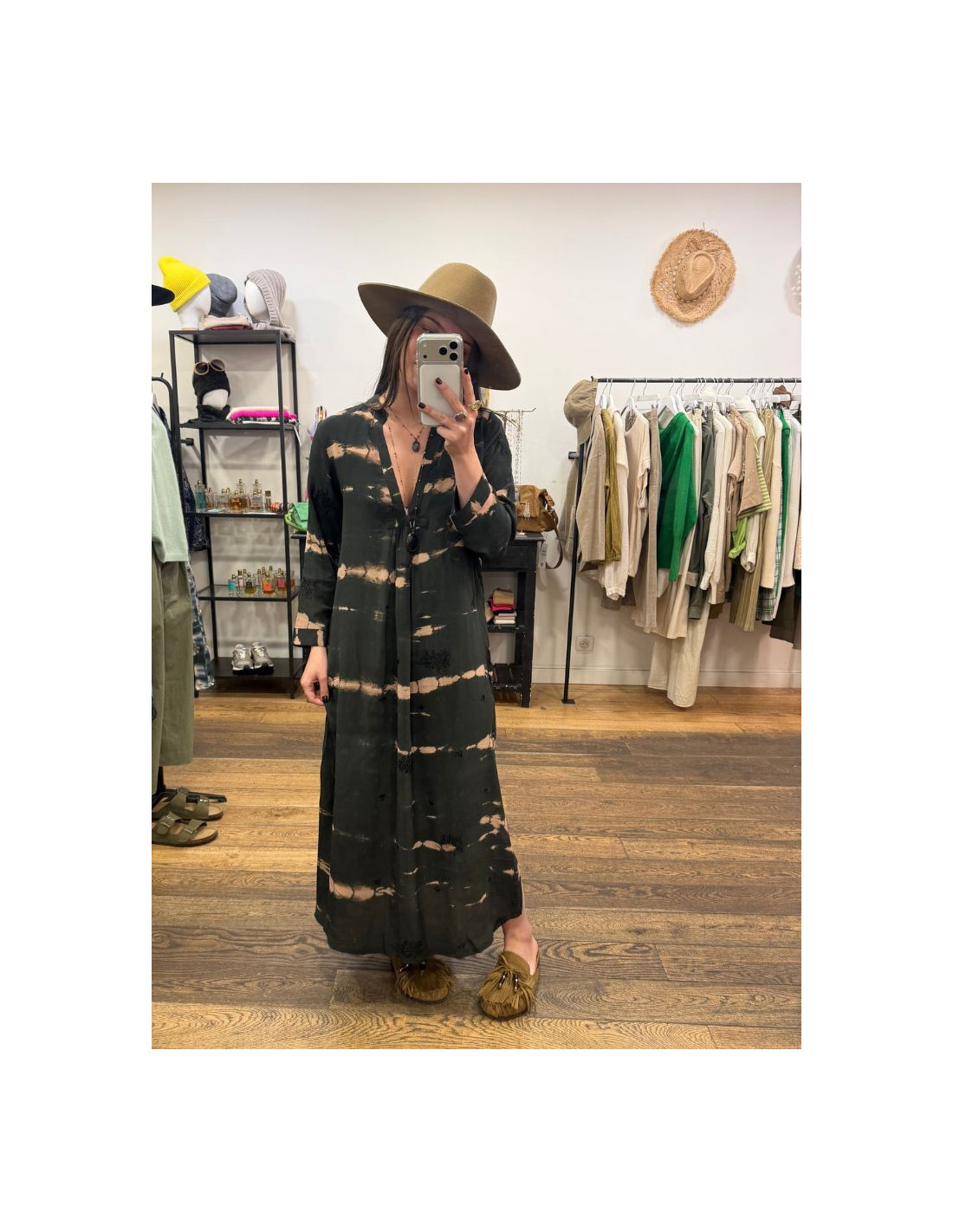 Le caftan Goa est un caftan à décolleté en V profond