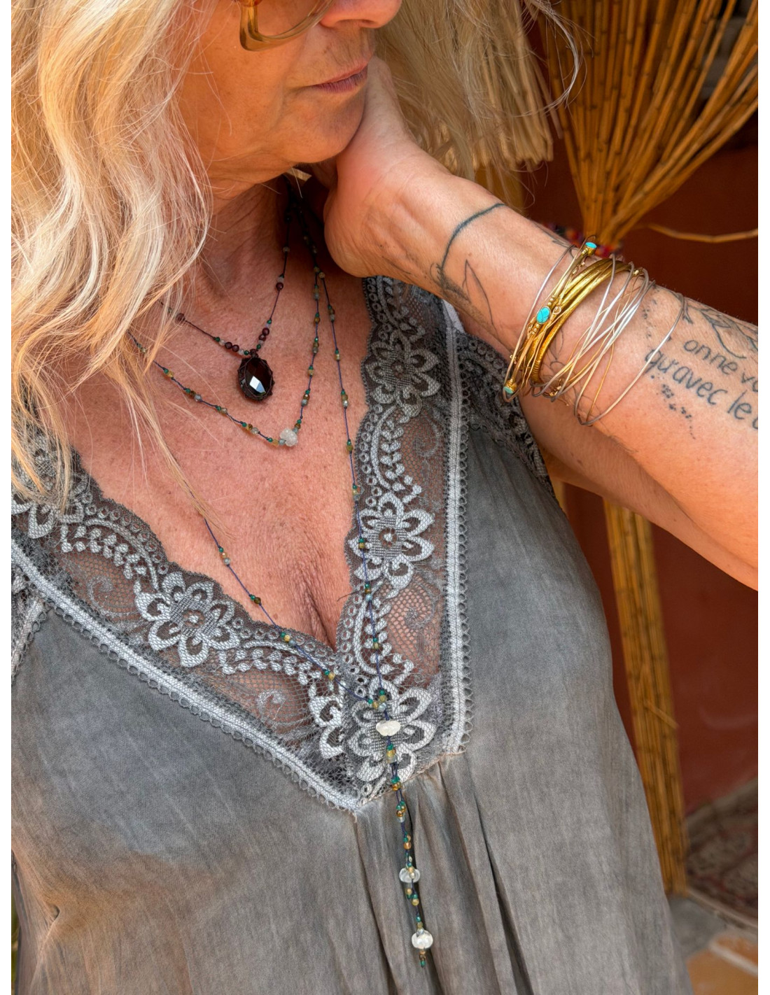 Décolleté col V délicatement orné de dentelle